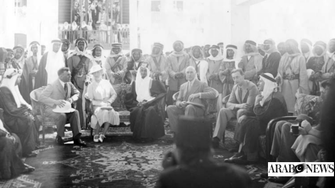 Arab News (West Asian) details Princess Alice’s route and historic stop at Dammam No. 7 as commercial oil production began; Arab News PK (West Asian) does not mention the itinerary or oil well but highlights the number of photographs and their early color format.